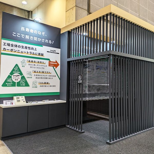 他にも工場全体の生産性向上やカーボンニュートラルに貢献できる製品「高耐久空気圧機器HPシリーズ」の特設コーナーも設けて課題解決事例をご紹介しました!