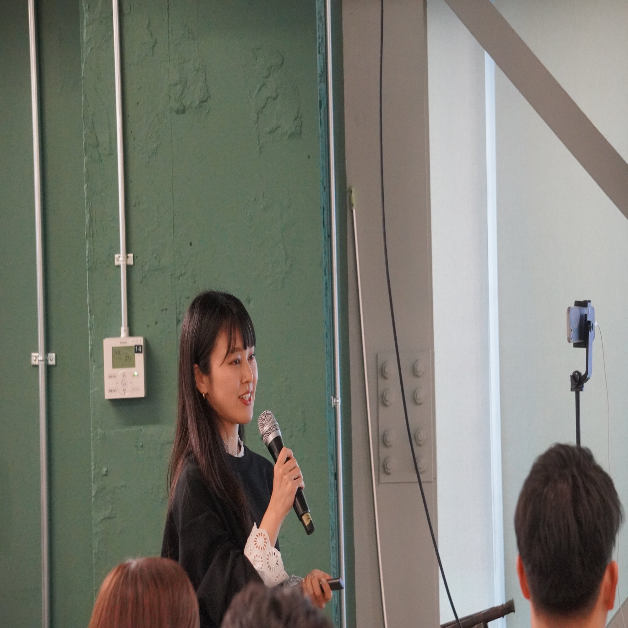 今回のキックオフのPM兼総合司会は、総務・業務企画部 役員秘書・全社Administratorの吉田恵梨さんです✨ 経営や管理職とコミュニケーションを取り、プログラムがうまくまわるように綿密に準備をしてくれました。