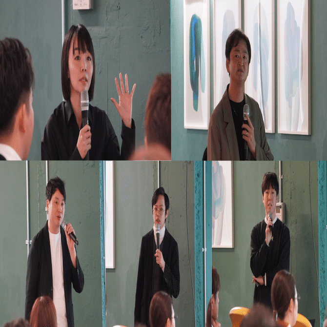 ■特別ゲストを招いてのセッション「100人の会社で求められること」 今回は、特別コンテンツとして、外部から2名の特別ゲストをお招きして「100人の会社で求められること」をテーマにセッションを実施しました。 モデレーターは常務執行役員/CHROの村田さんが担当しました🎤