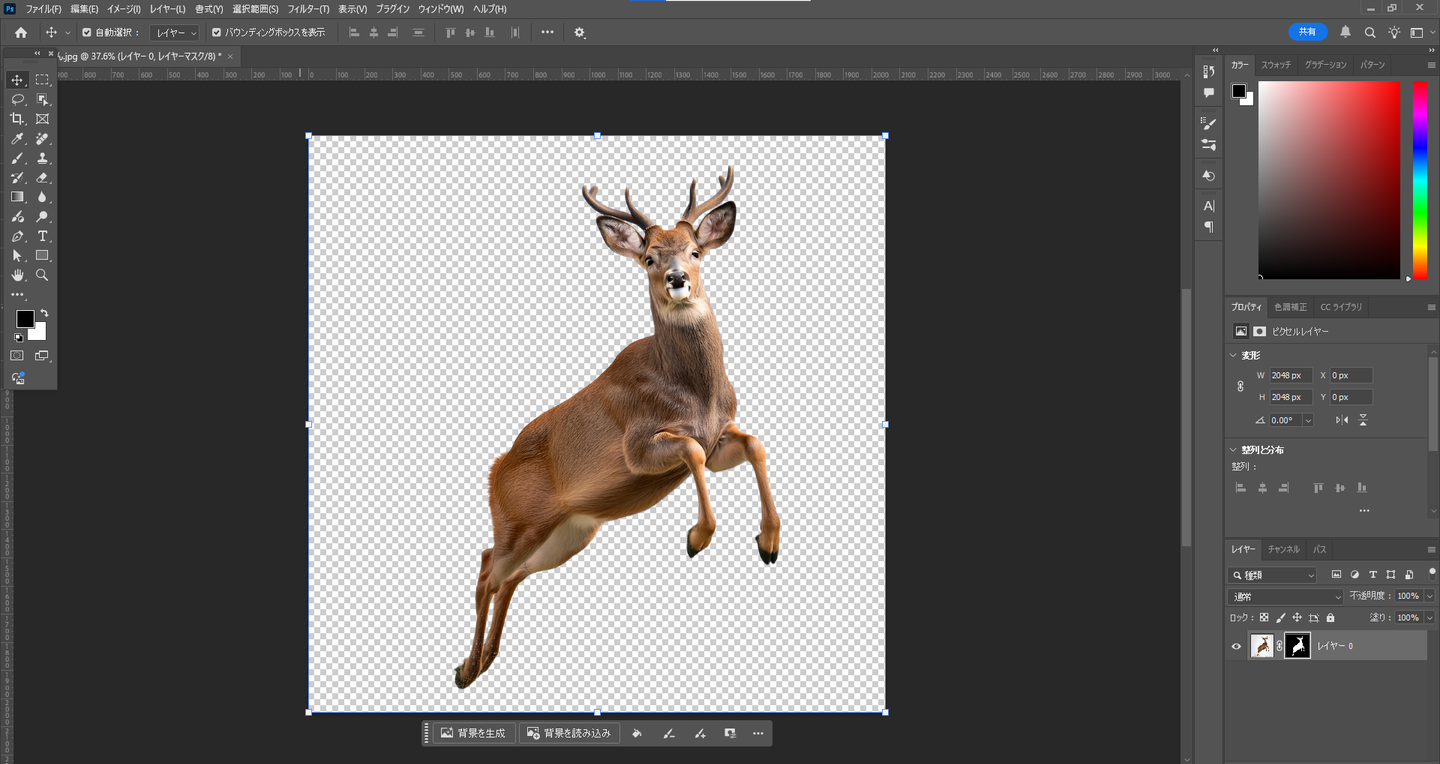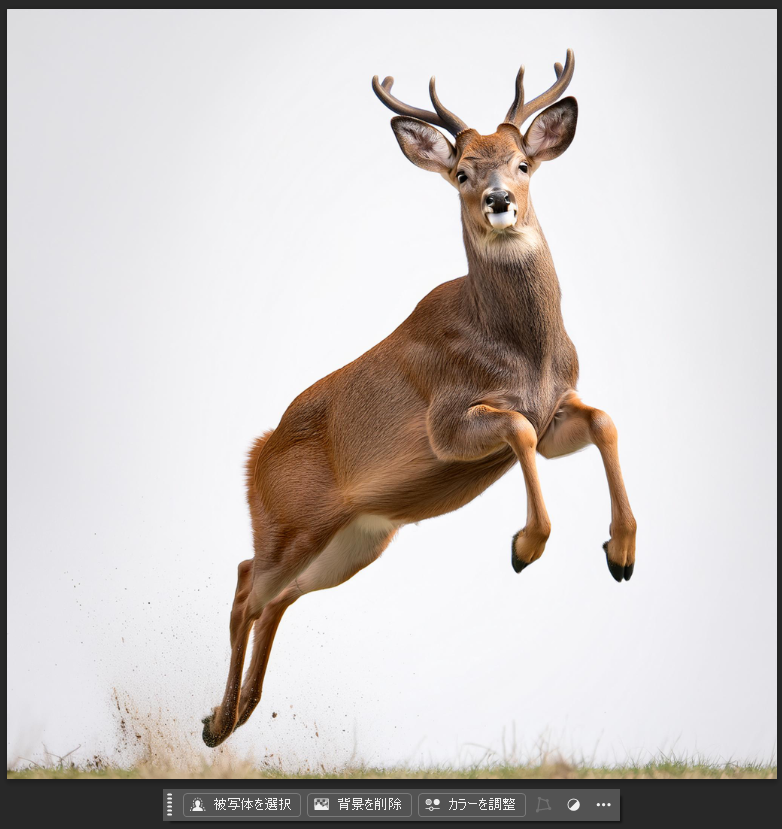Fireflyなら、こんな躍動感のある鹿の画像も簡単に生成できます。