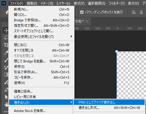 背景を消したら、ファイル→書き出し→PNGとしてクイック書き出し