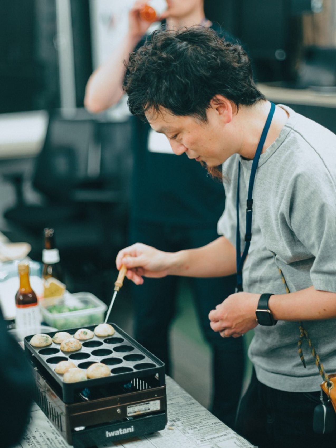 今回ドリンクは、クラフトビールと日本ワインをスタッフのこだわりでチョイス。ケータリングのほか、投資先のRehab for JAPAN・池上さんがたこ焼きを振る舞ってくれました。しかも、マイたこ焼き器持参です!