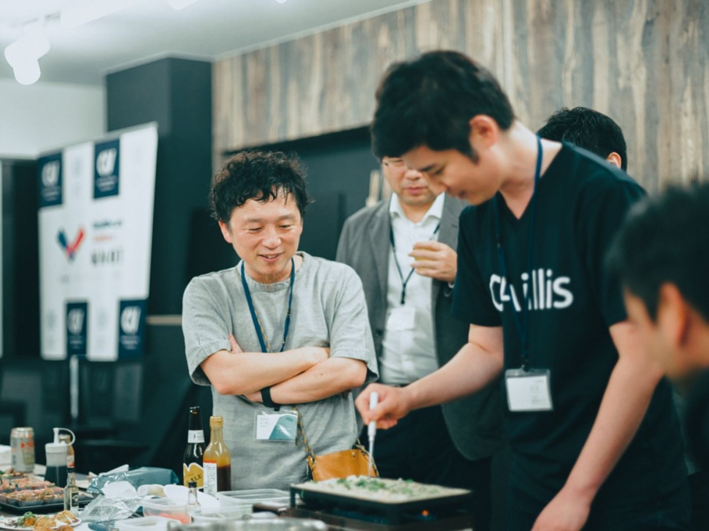 CMV青木をはじめ関西出身者も多かったこともあり、たこ焼きブースは大盛り上がり。たこ焼きコミュニケーションで、初対面同士でも会話が広がります。