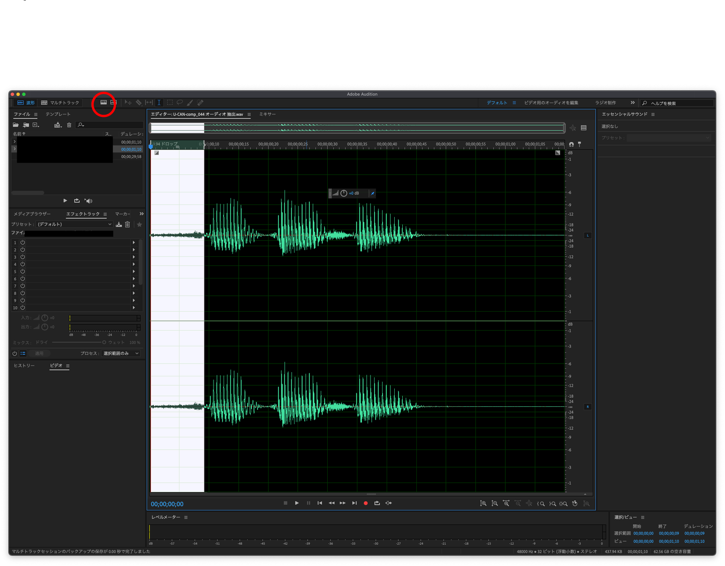では、この後は ノイズをちょっとでも削れる アドビAuditionをつかったテクニックをご紹介