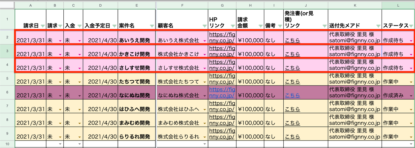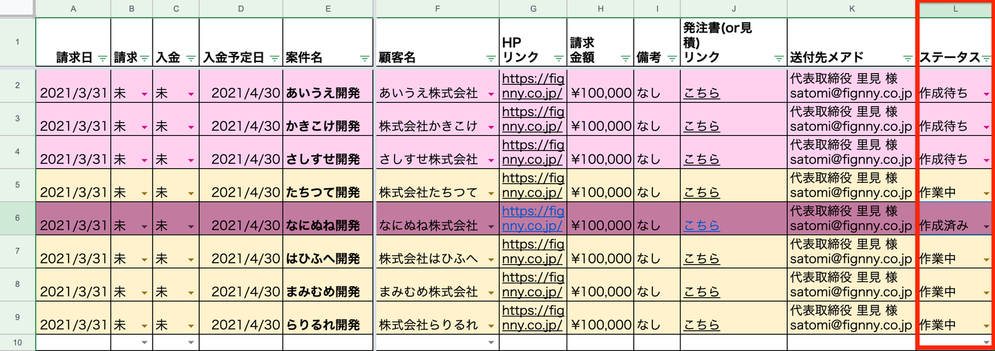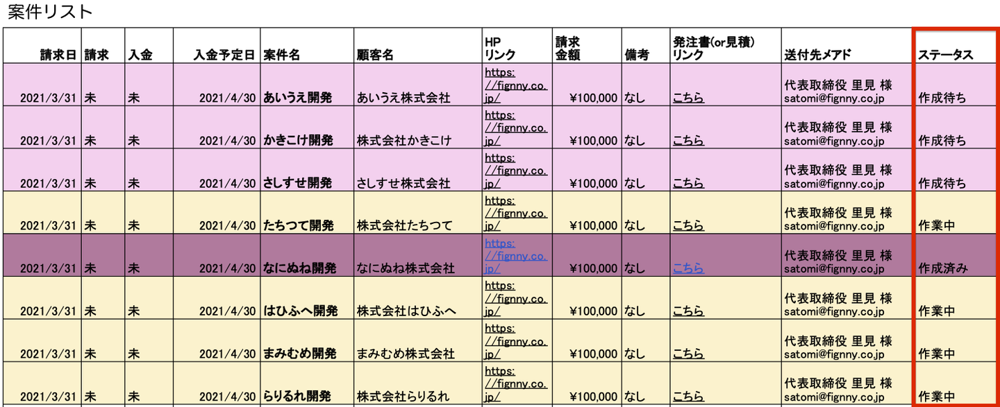 ・案件リスト(スプレッドシート)