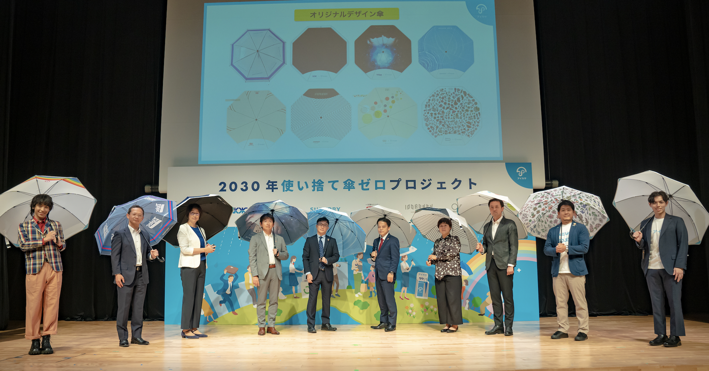 本プロジェクト開始に先立つ2022年5月31日の記者発表会では、タレントのryuchell氏がスペシャルサポーターとして応援に駆けつけ、ゴミ清掃芸人のマシンガンズ滝沢氏が司会を務め、日本を代表する大手企業8社と一緒に各社オリジナルの傘の発表とプロジェクトに参加する意気込みを発表していただきました。