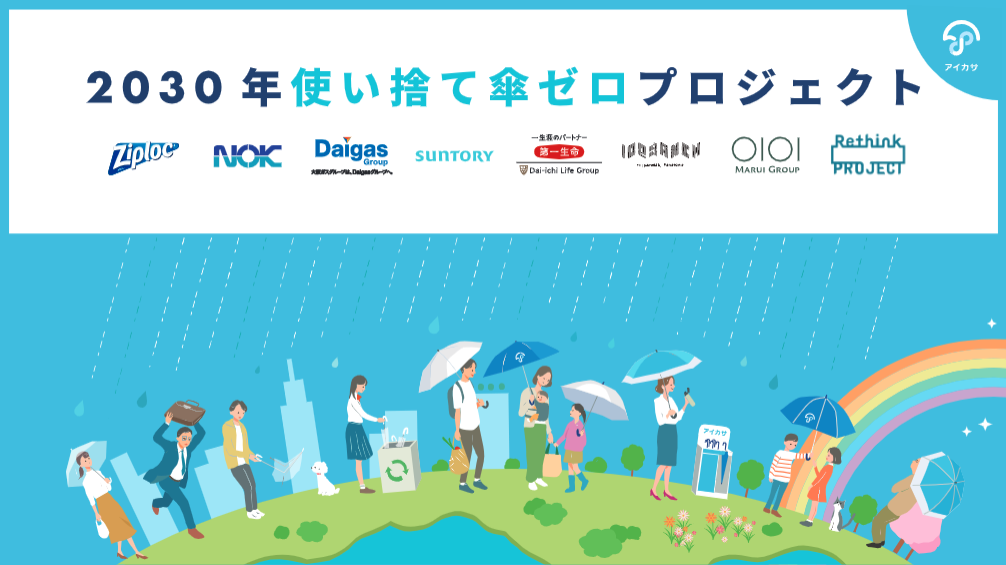 傘のシェアリングサービス「アイカサ」はSDGs達成期限の2030年までに日本の使い捨て傘ゼロを目指すため、大手企業と協業し<2030年使い捨て傘ゼロプロジェクト>を目指すムーブメントアクションを発足いたしました。