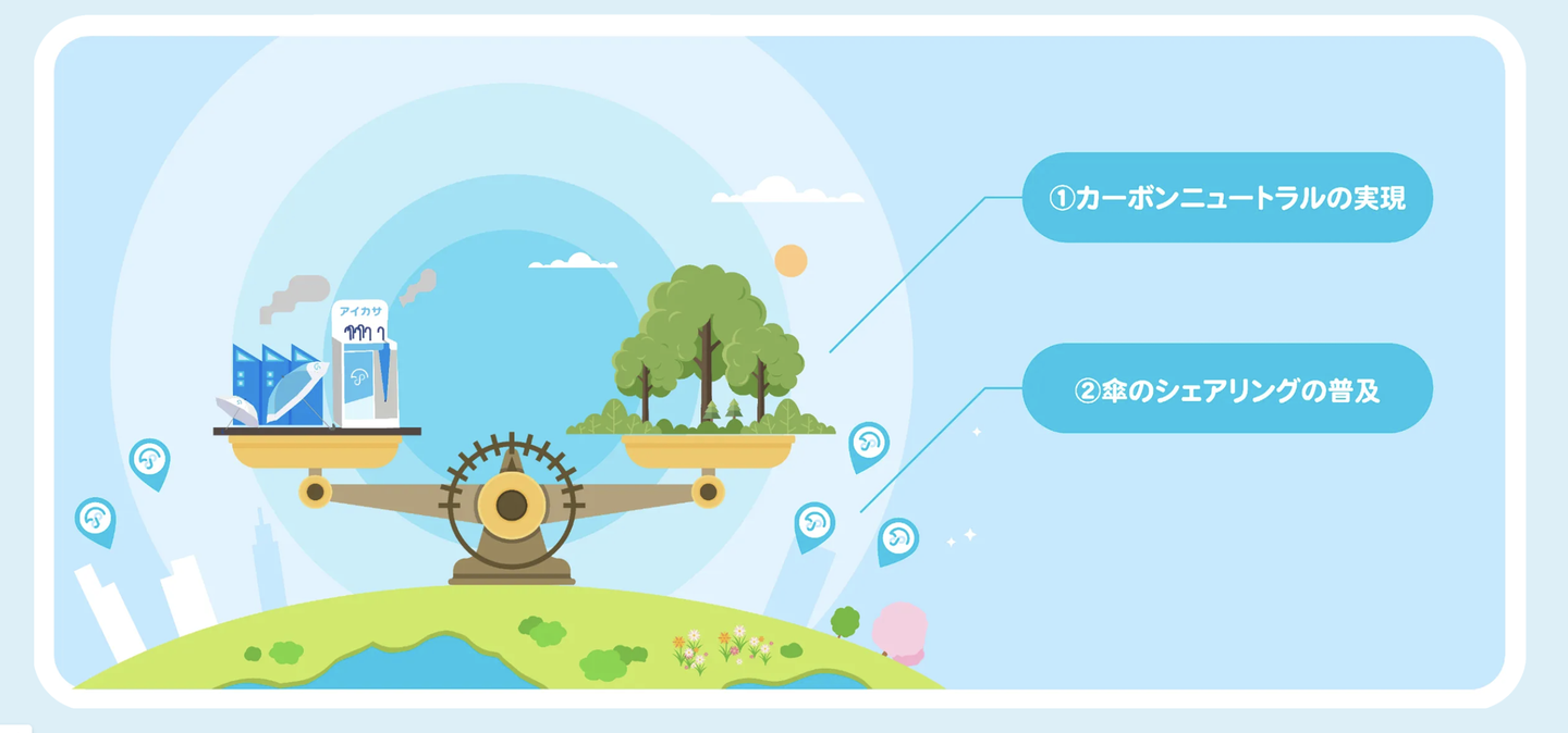 そして、使い捨て傘ゼロを達成する上で各大手企業と取り組む事は、いつでもどこでもアイカサを借りられる仕組みをより大きく展開することが実現し、2030年までに社会に使い捨て傘ゼロのアクションを浸透させる影響力につながります。