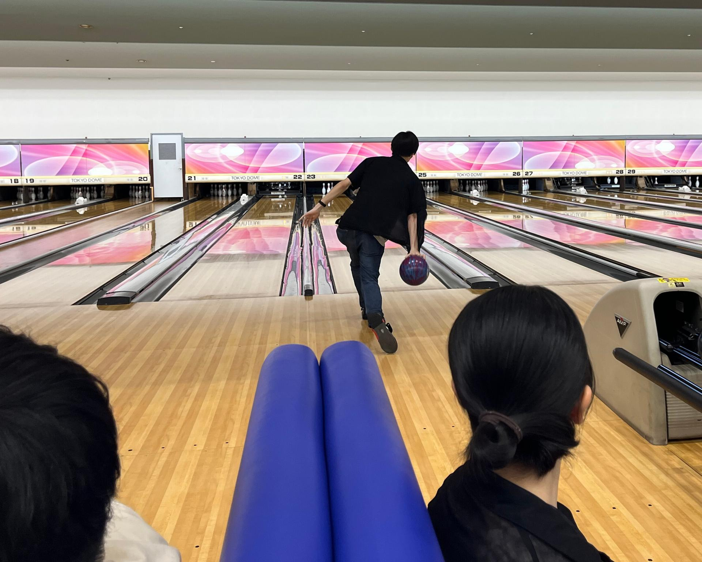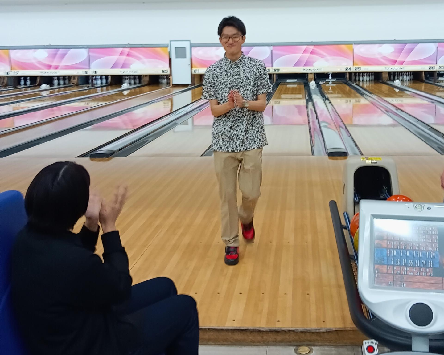 最初はどこかぎこちなかった空気も、ボウリングの第一投で一気にほぐれました。