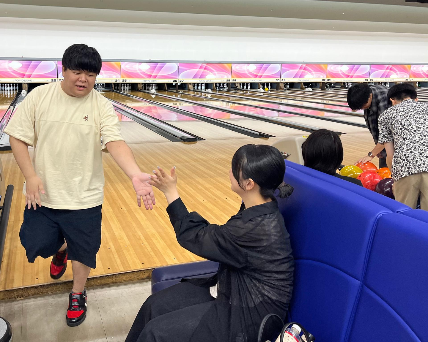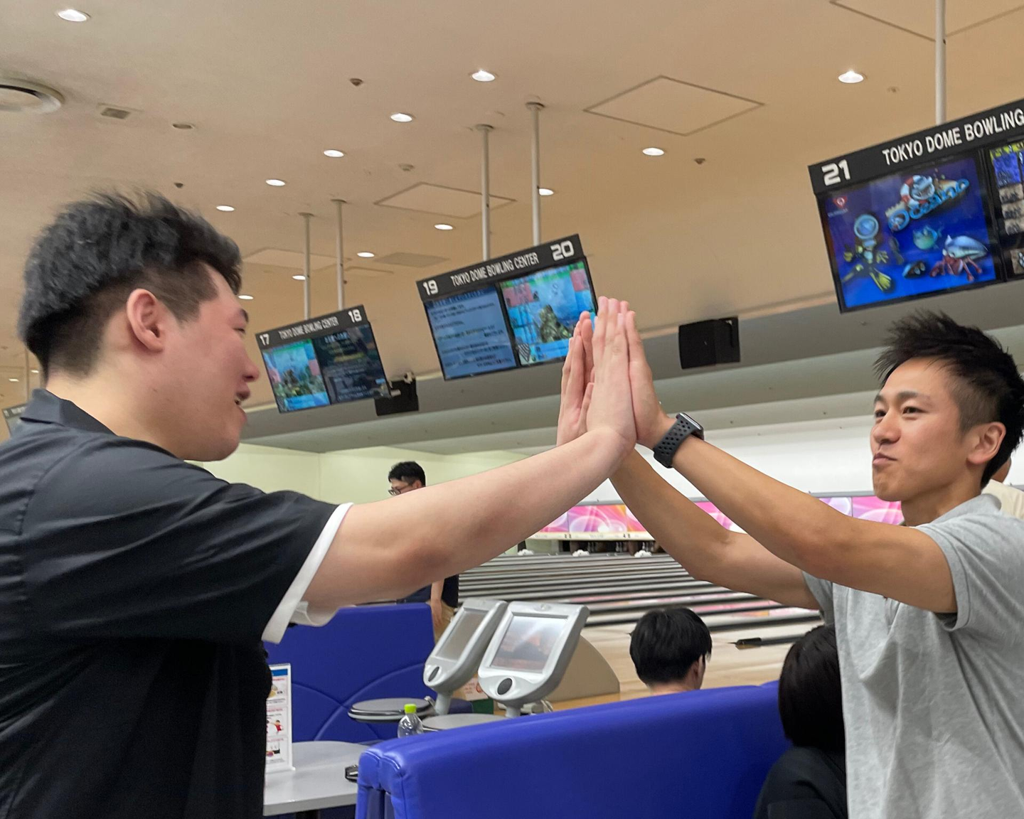 ハイタッチ、歓声、ストライクでの拍手はもちろん、