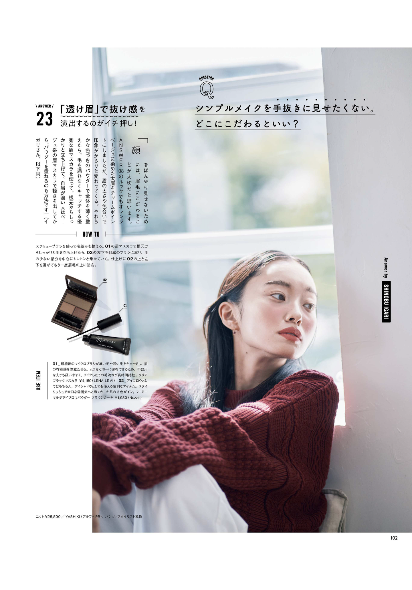 透け眉で抜け感を演出することでシンプルメイクでも"手抜きに見えない"印象に。