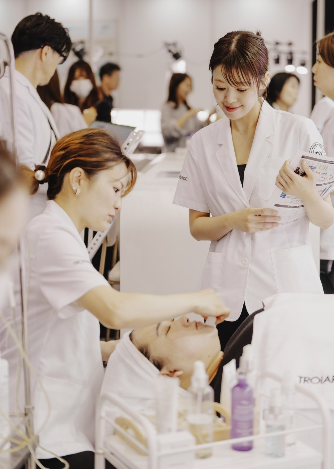 TROIAREUKEブースには、肌の奥深くまで成分がじわ〜っと浸透するイメージを表現したデザインや空間、そして、エステの本質を追求するトップサロンの方による素晴らしい施術とサービスによりたくさんの方々が足を止めて下さり、「かかりつけエステ」の概念を多くの人へ伝え、ワクワクや感動をお届けする事ができたと思います。