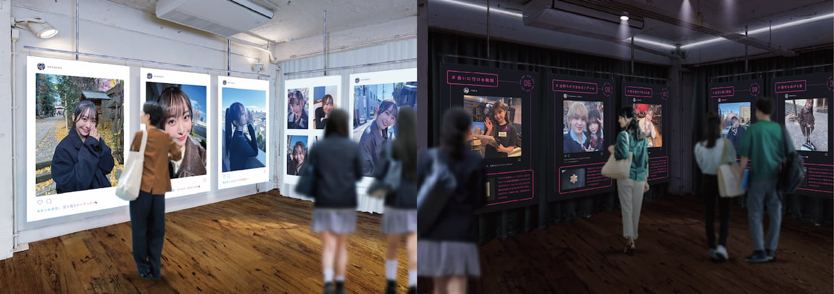 来場者は「盛れたはずの写真が、実は漏れていた」という体験を通じて、SNS投稿に潜む危険性を視覚的に理解し、安全なSNS利用について考えるきっかけを得ることができる体験型展示イベント。