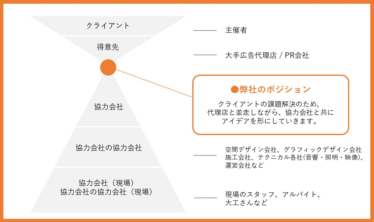 例えば、クライアントが広告代理店に依頼をして、制作会社は広告代理店から依頼を受けます。