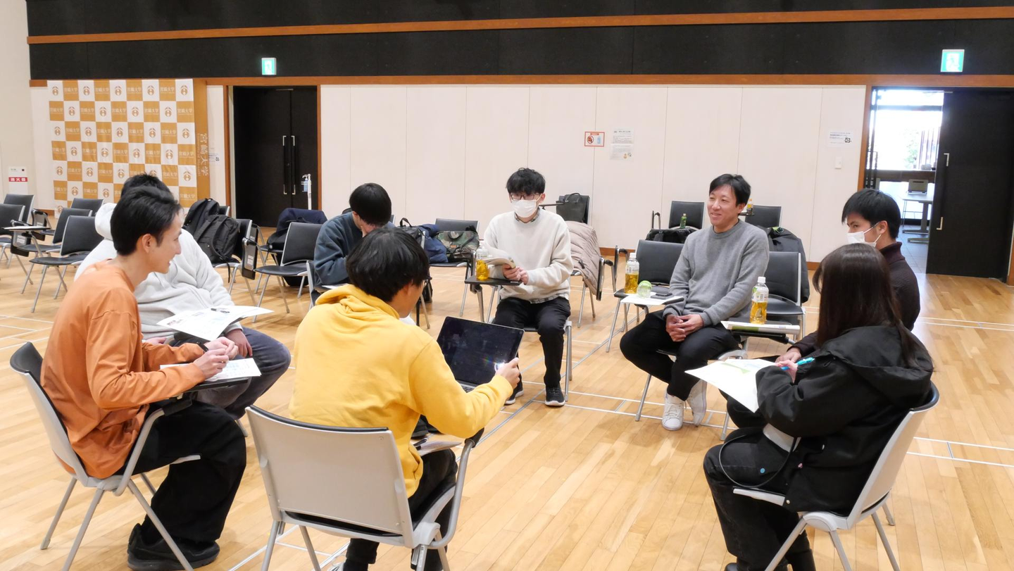このイベントは、県内のベンチャー企業やIT企業と学生が将来についてざっくばらんに話し合うという趣旨のもと行われ、企業側は県内のベンチャー企業などが4社、学生側は工学部を中心とした学生さんが約20名ほど参加してくれました。学生さんは、ITに関心のある方、起業を目指している方、就活のために県内企業の情報を集めたい方など様々!