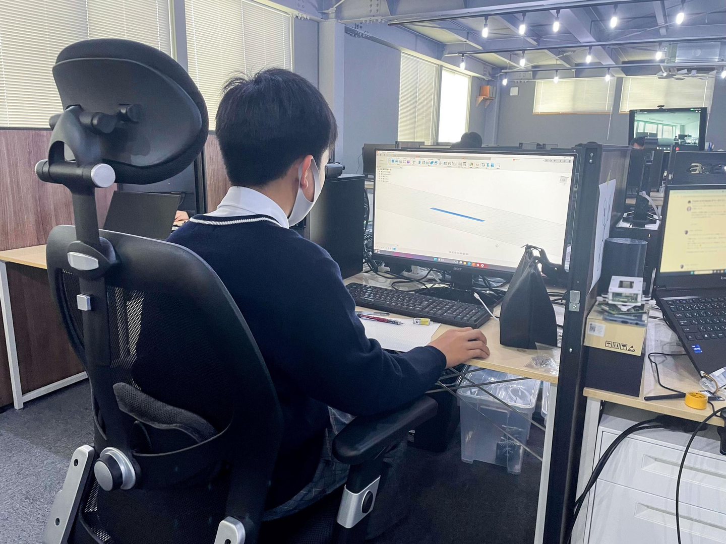 最初に簡単にソフトの使い方を説明して、製作するものは特に指定せず好きなものを作っていただきました。担当者によると、PCやソフトの習得が早く、一度手順を教えただけでどんどん設計を進めていたのでとても驚いたそうです。