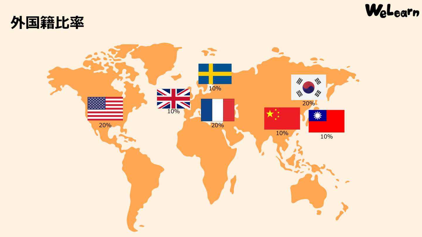 2026年2月時点でWeLearnではアメリカ、イギリス、スウェーデン、フランス、中国、台湾、韓国など多様な国籍のメンバーが在籍しています。