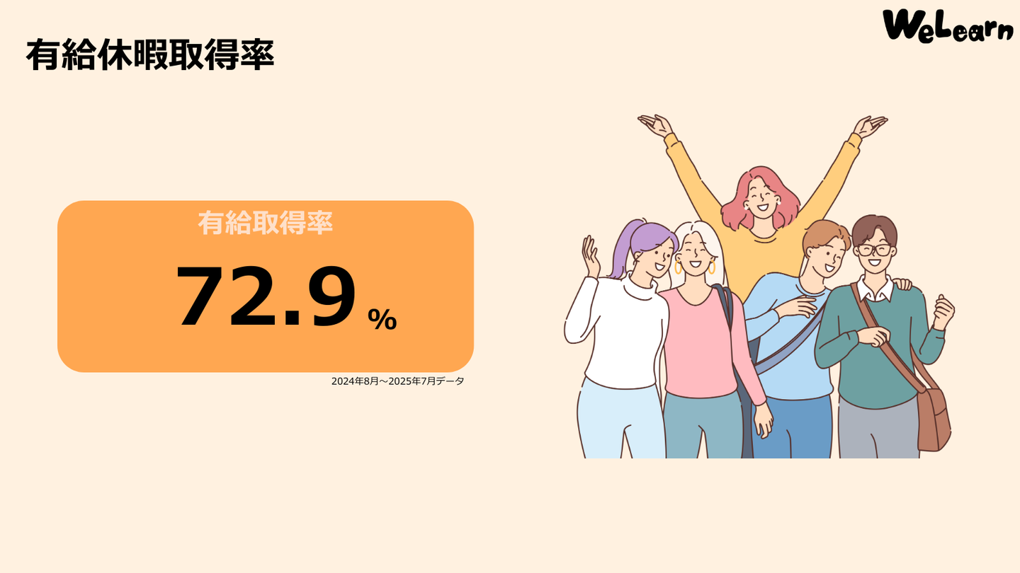 2024年8月~2025年7月の有給休暇取得率は72.9%でした。