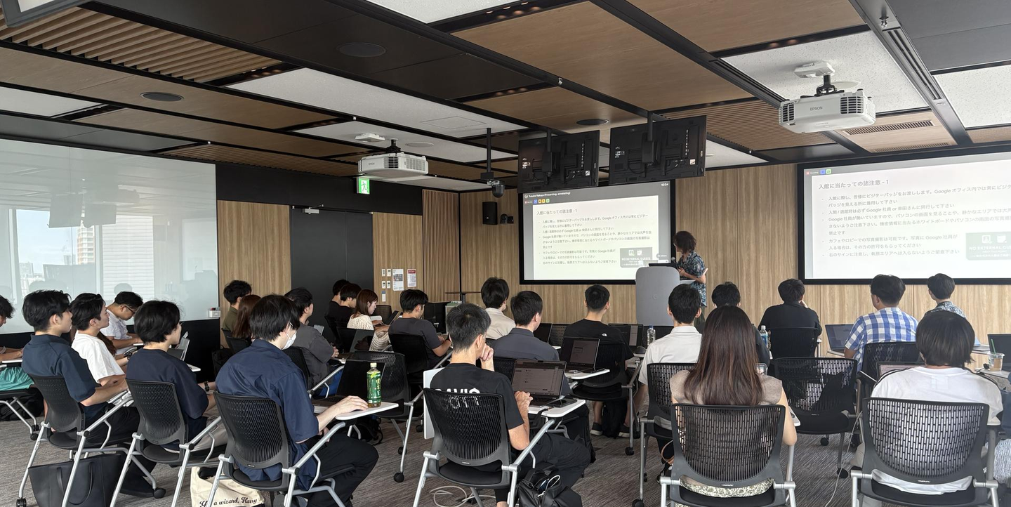 開催場所は、Google社 様の渋谷オフィス。オンラインとオフラインのハイブリッド形式で、当社のエンジニア約90名が参加しました。