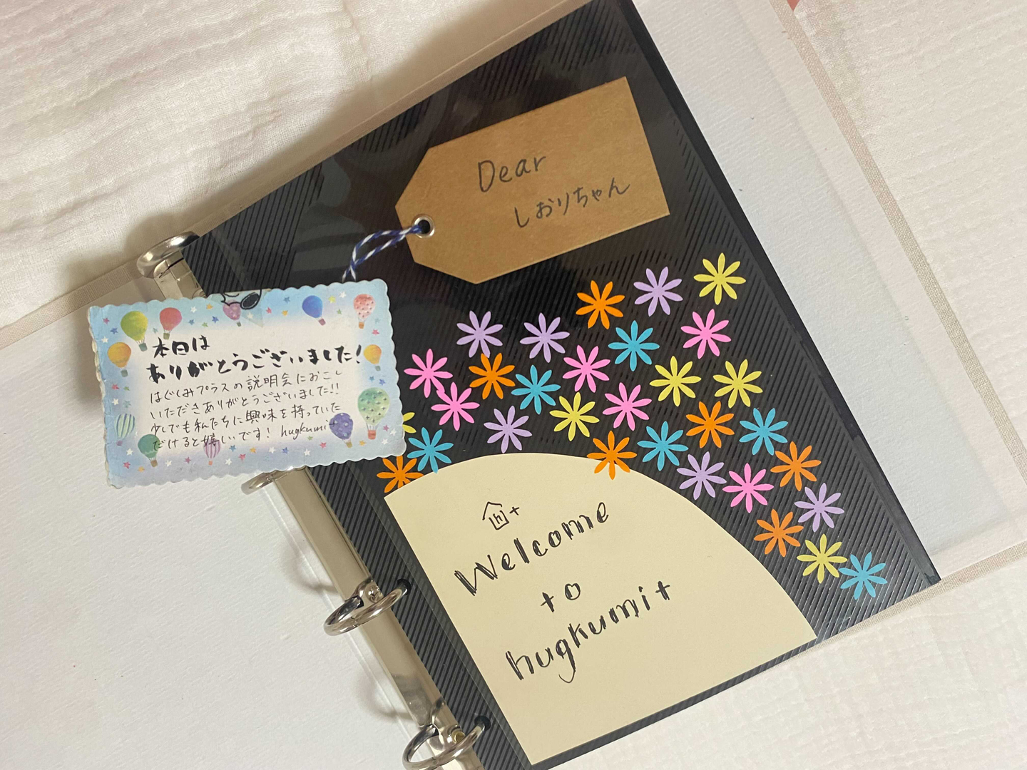 上の写真は、1次選考終わりにいただいたメッセージカードと内定式でいただいた社員の方々のメッセージが書かれたアルバムです。1次選考を受けた後「いや、この会社、本当に入りたいな…」と思い、その日もらったメッセージカードを大切にとっていました(笑)そんな場所に入れた!と実感できた内定式でいただいたアルバムも本当に嬉しかったです。