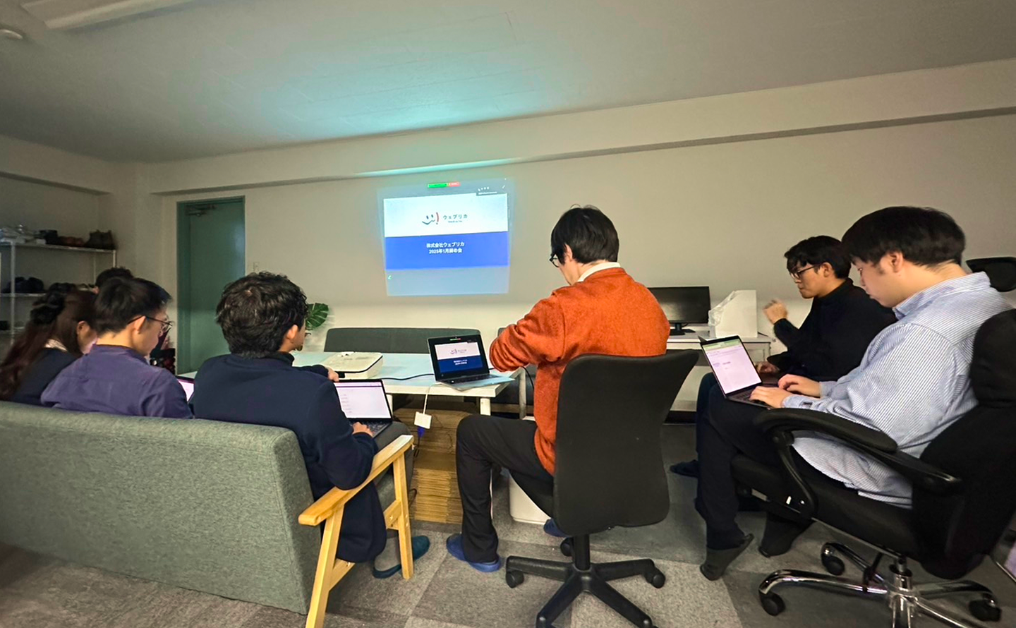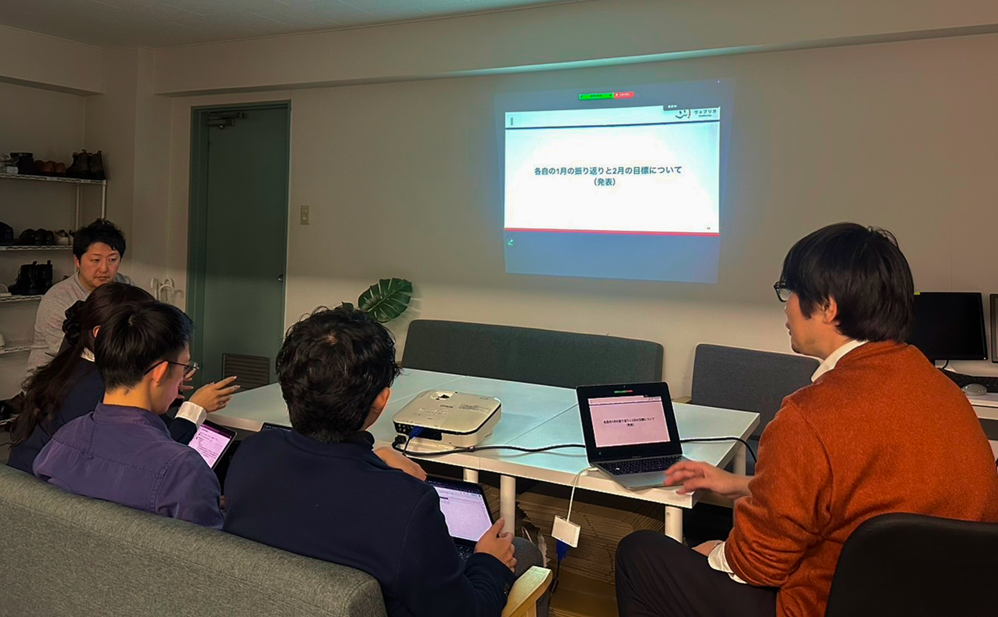 1月の締め会は内定者3名も初めて対面で全員揃うなどし賑やかな会となりました。事業や目標について理解できることはもちろんですが、メンバー同士の交流の場にもなっているので、今後も継続して実施をしていく予定です。
