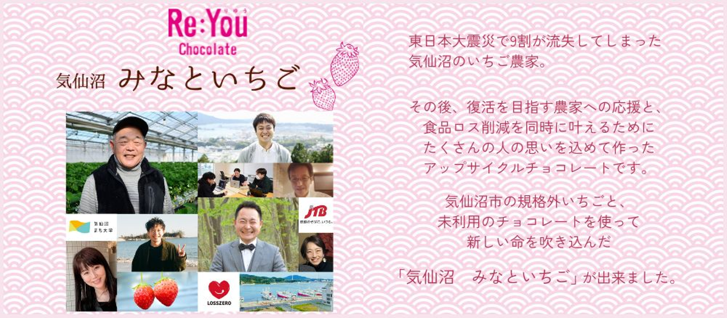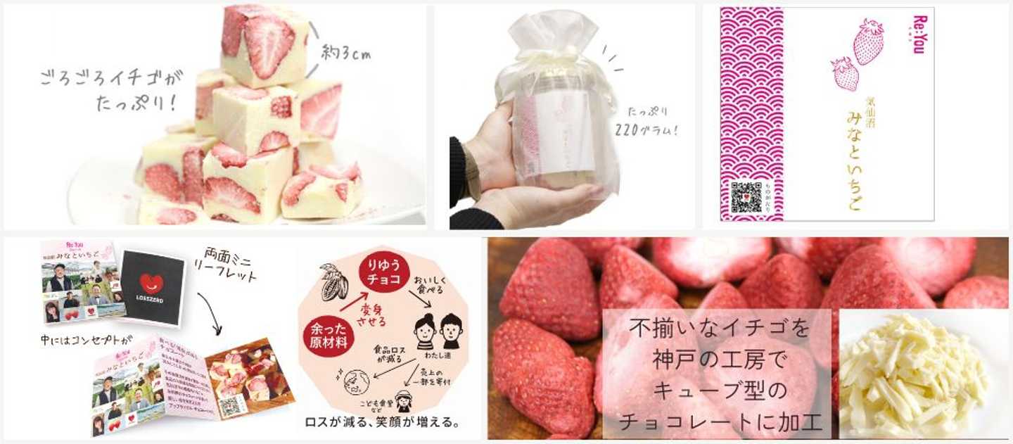 「不揃のいちごの形をいかしてフリーズドライにし、ホワイトチョコでコーティングした、気仙沼みなといちご」が、当社の『Re:You』ブランド第一号商品として誕生しました。