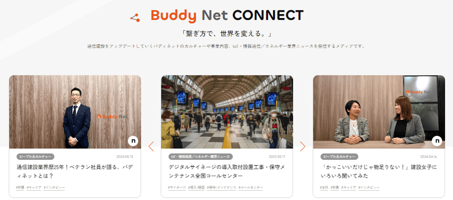 最後にご紹介させていただくのは、オウンドメディアの「Buddy Net CONNECT」!