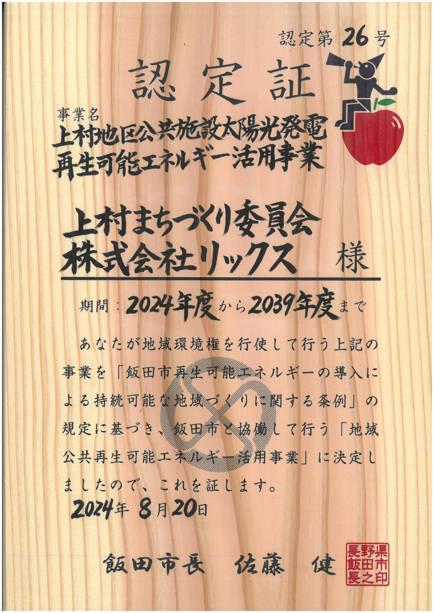 地域公共再生可能エネルギー活用事業 認定式及び協定書調印式が開催されました