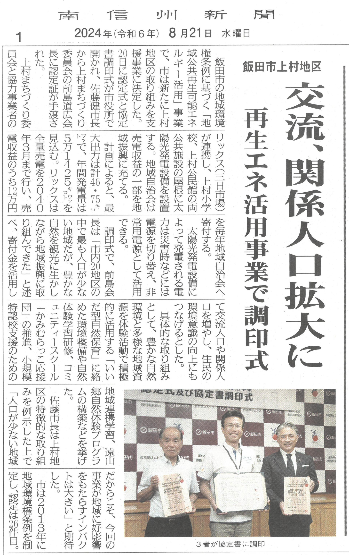 8/19に飯田市庁舎にて「飯田市可能エネルギーの導入による持続可能な地域づくりに関する条例」