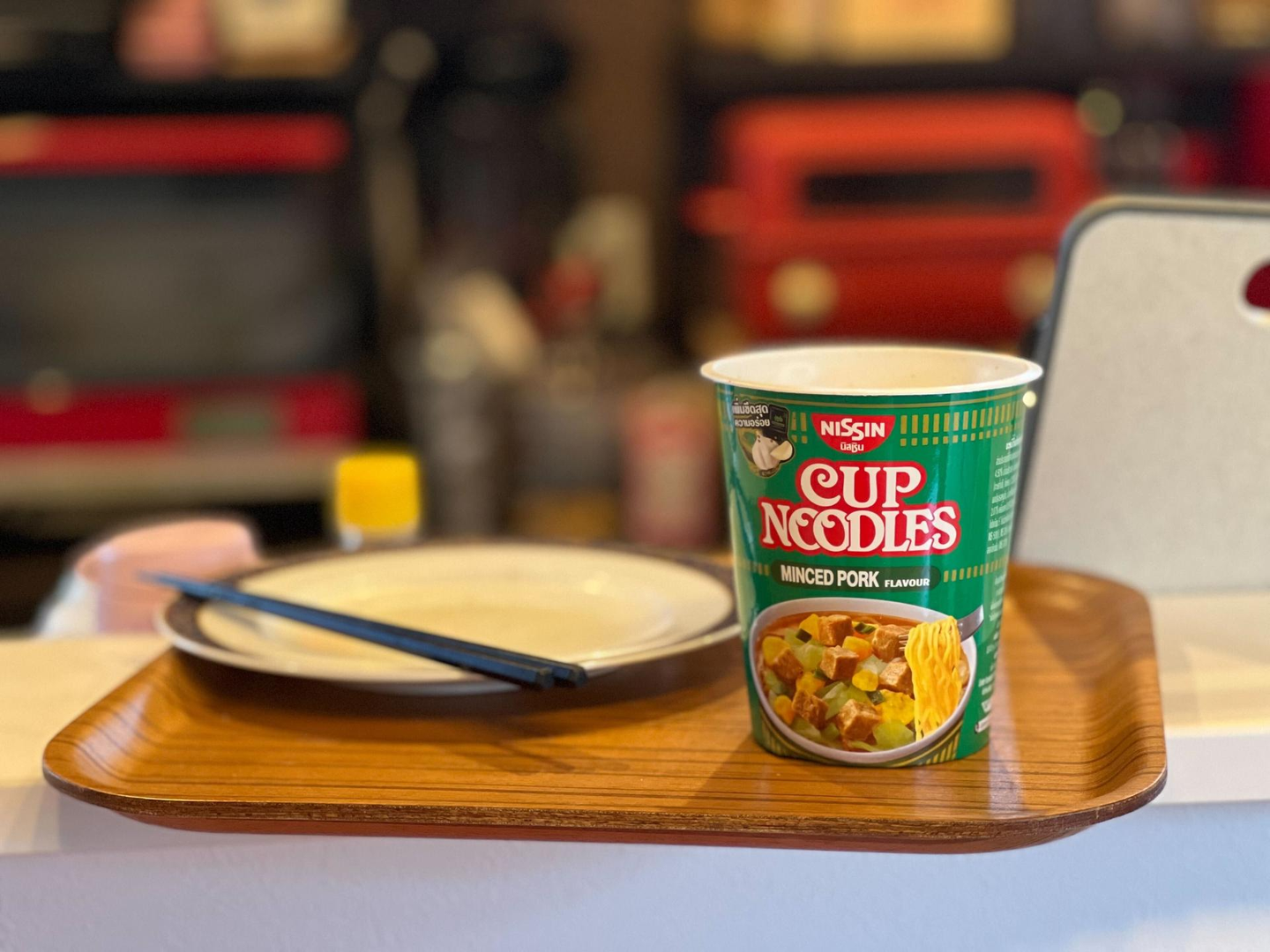 (鎌上)「あはは(笑)私も辛いやつ食べてます。タイでしか売ってないカップラーメンをスーパーで見つけて」