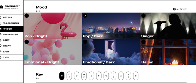 1000曲以上もの過去ヒットソングを学習した、作曲AI「FIMMIGRM」。”すべての人がオリジナル曲を形にできる” をコンセプトに、開発を進めてきました。