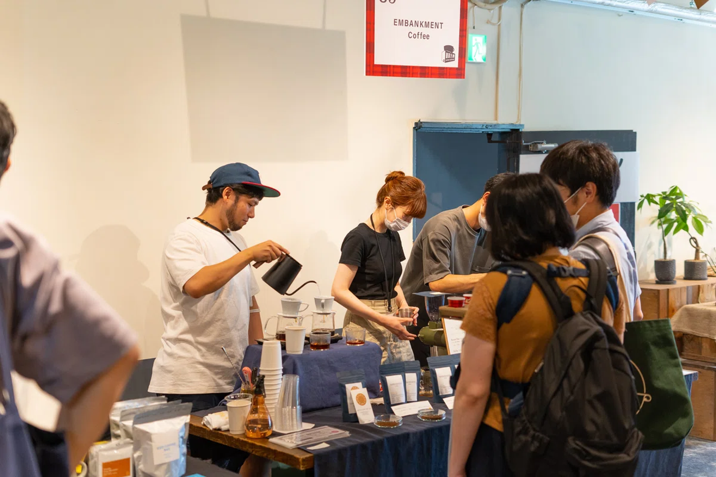 まずはKCOFFEE森さん。隣にはミルで豆を挽いてるEMBANKMENT Coffee野村さん!