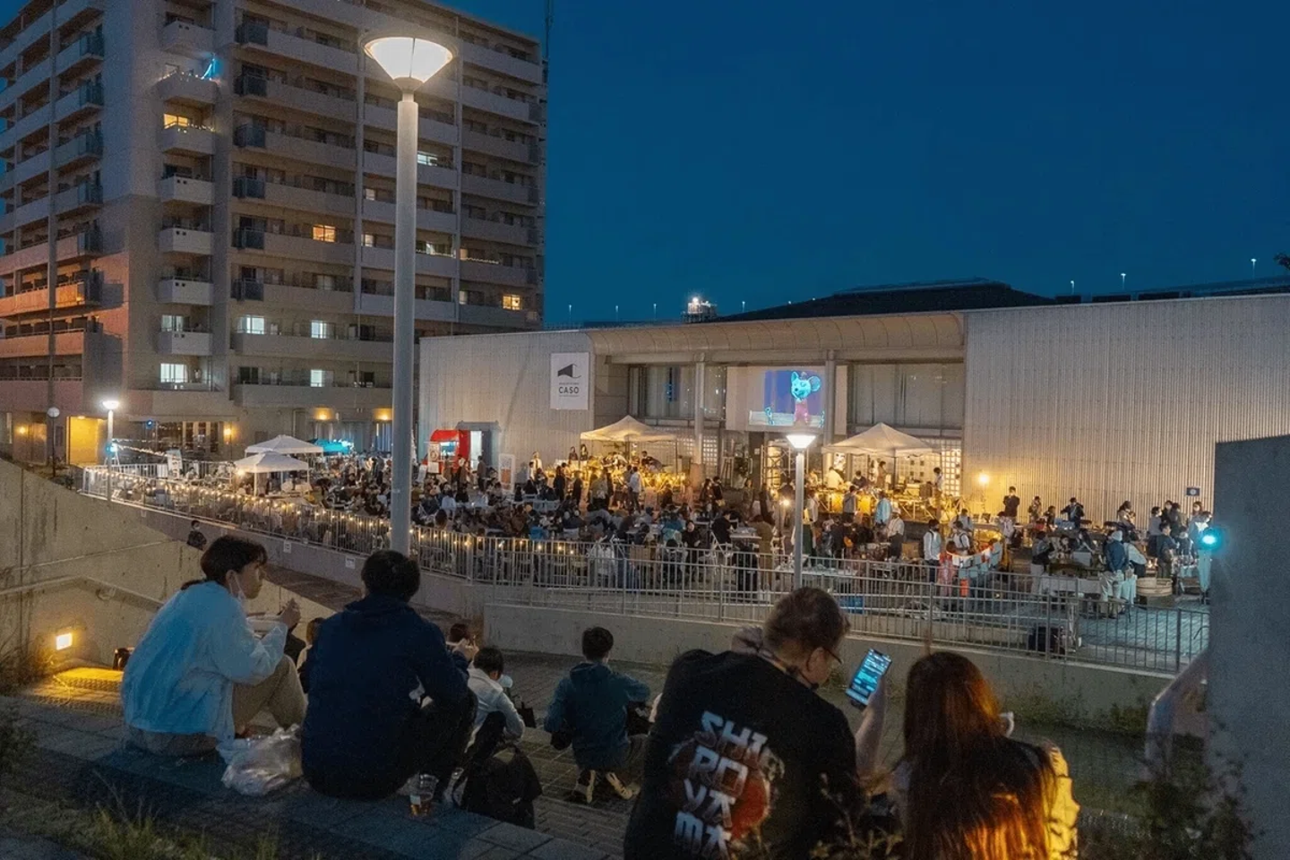 わたしたち美想空間の拠点 大阪市港区・築港エリアで、2021年から続く屋外映画イベント『築港ナイトマーケット&サンセットシアター』。