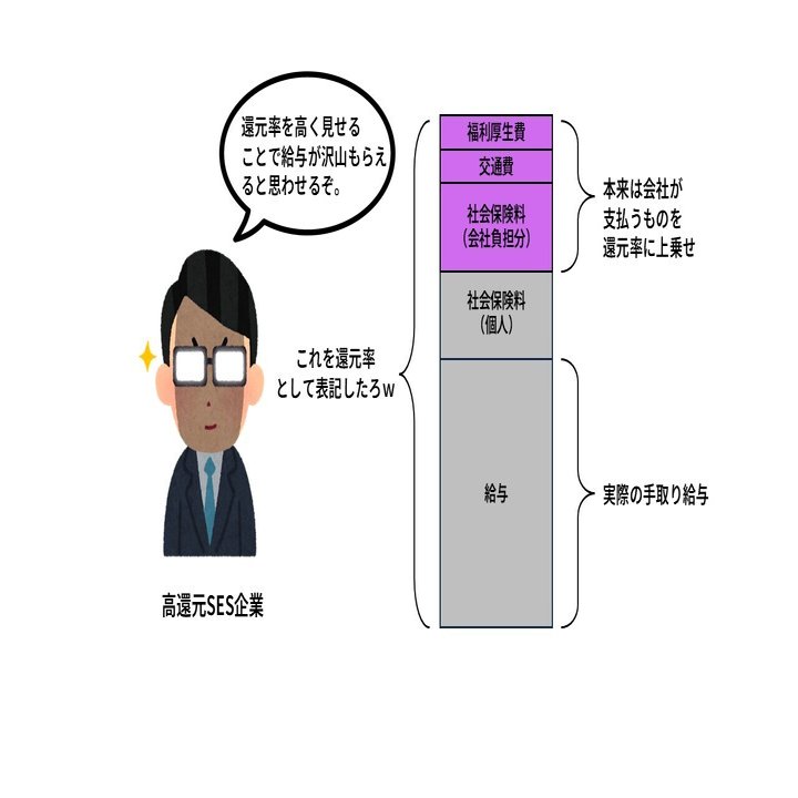 高還元SESとは還元率(マージン率)が高いSES企業のことを指します。