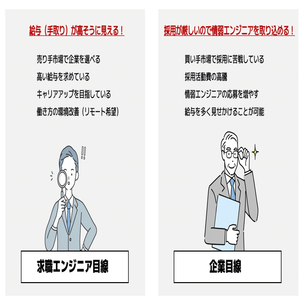 ■求職エンジニア目線 → 給与(手取り)が高そうに見える