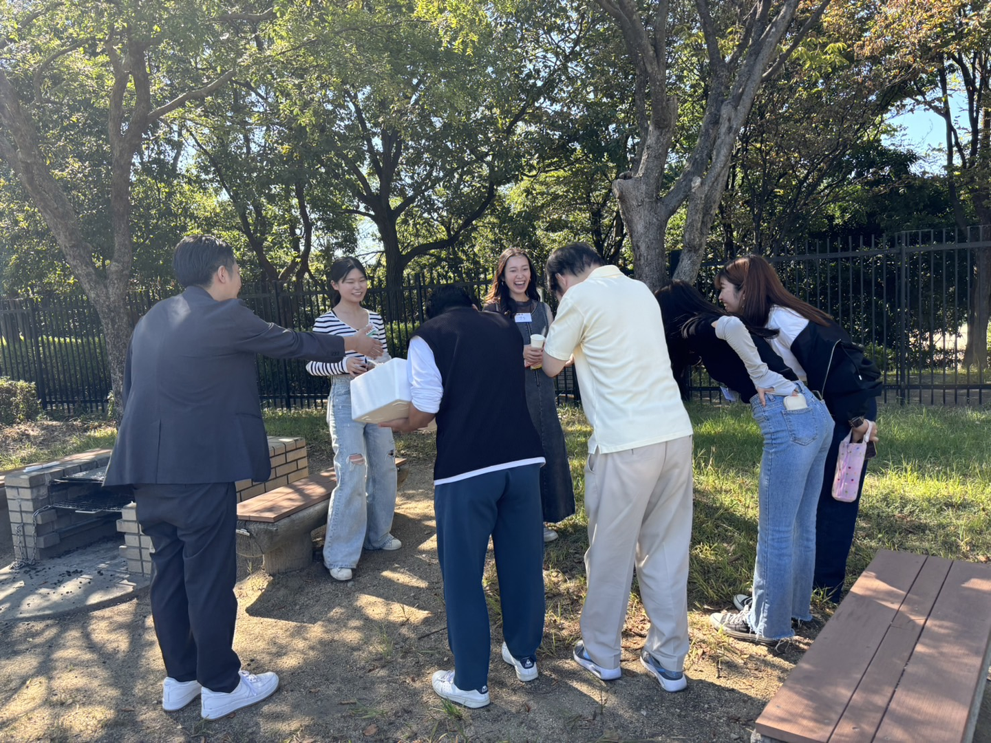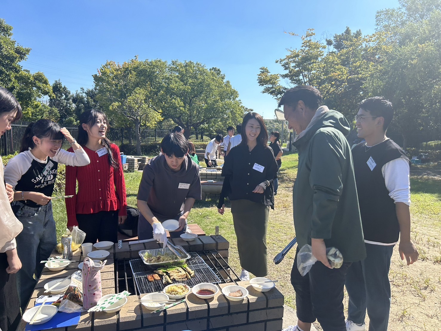 実際にお肉や野菜を焼き始めてからも、ゲームは終わりではなく、学生の引き抜きをするチームもありました!!!それぞれのチームが食材や調味料の多さ、チームの良さをPRすることで、学生がいろんなチームを移動しながらたくさん交流しているのが印象的でした!