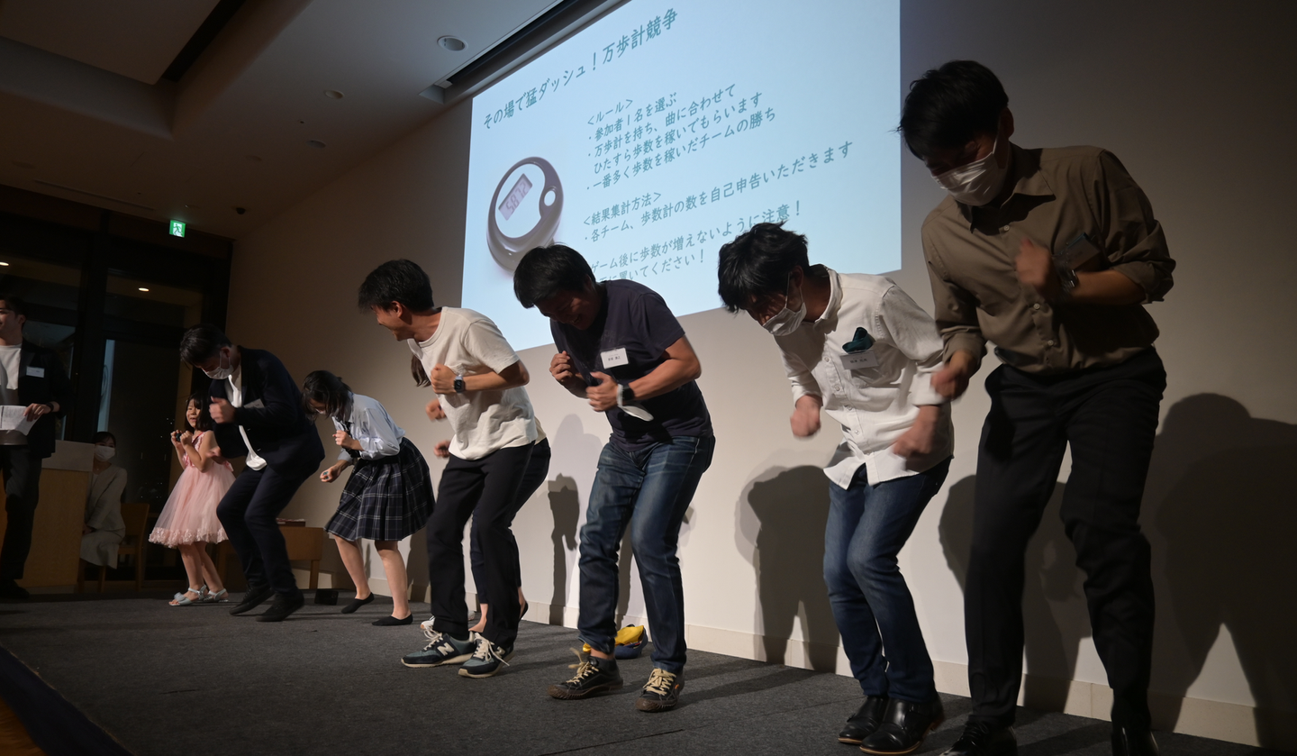 「音楽に合わせてその場で猛ダッシュした結果、万歩計の歩数が一番多かった人の勝ち」というシンプルなゲームで異常な盛り上がりを見せる場内
