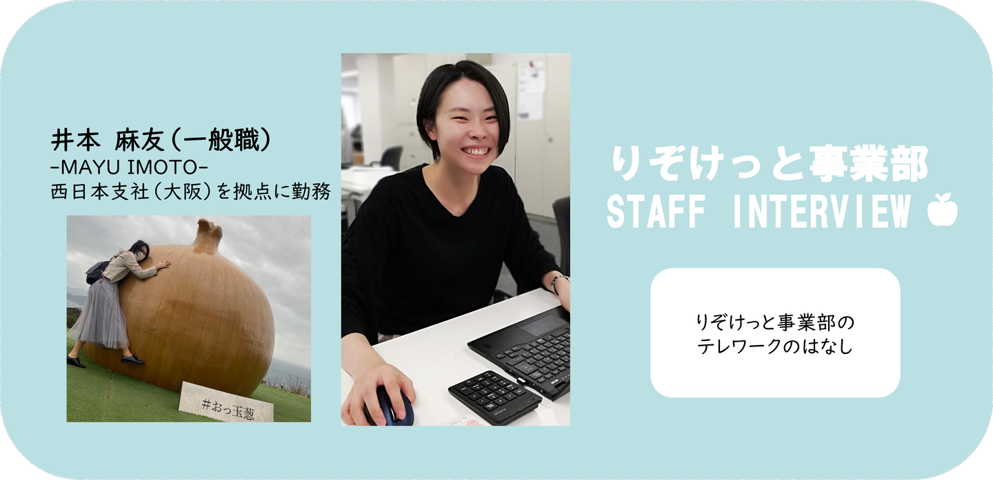 STAFF INTERVIEW「テレワークって言ってるけど、実際のところどうなの?」そんな疑問を少しでもクリアにできるように、実際にりぞけっと事業部の新規プロジェクトチームで勤務している井本さんにインタビュー!たくさんお話してくれましたので、ノーカットでお届けします!