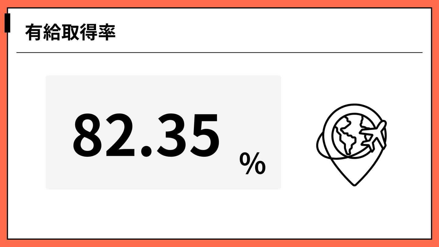全国平均(約60%)を大きく上回る82%の有休取得率を実現。
