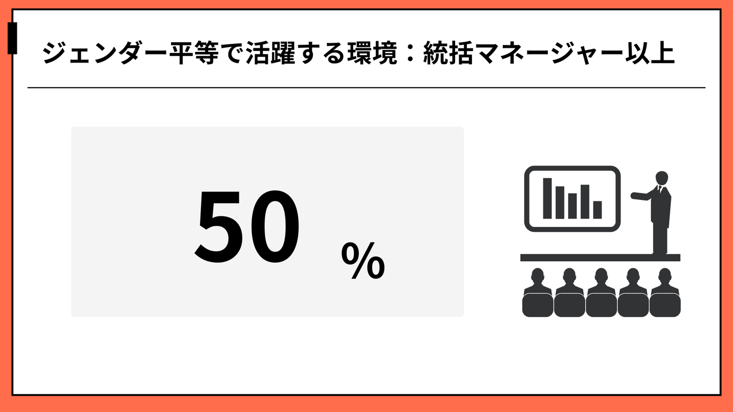 ・ジェンダーバランスのとれた組織──役職者の男女比は「ちょうど半々」