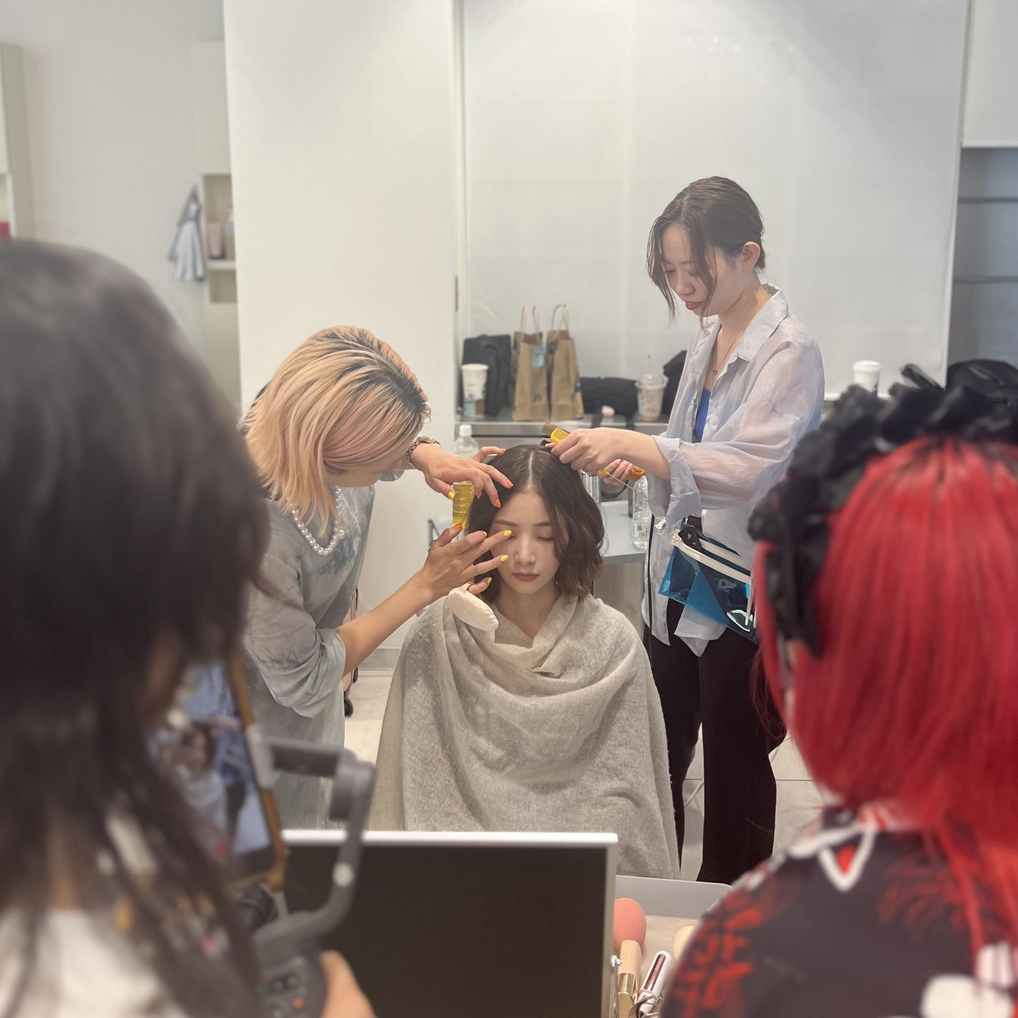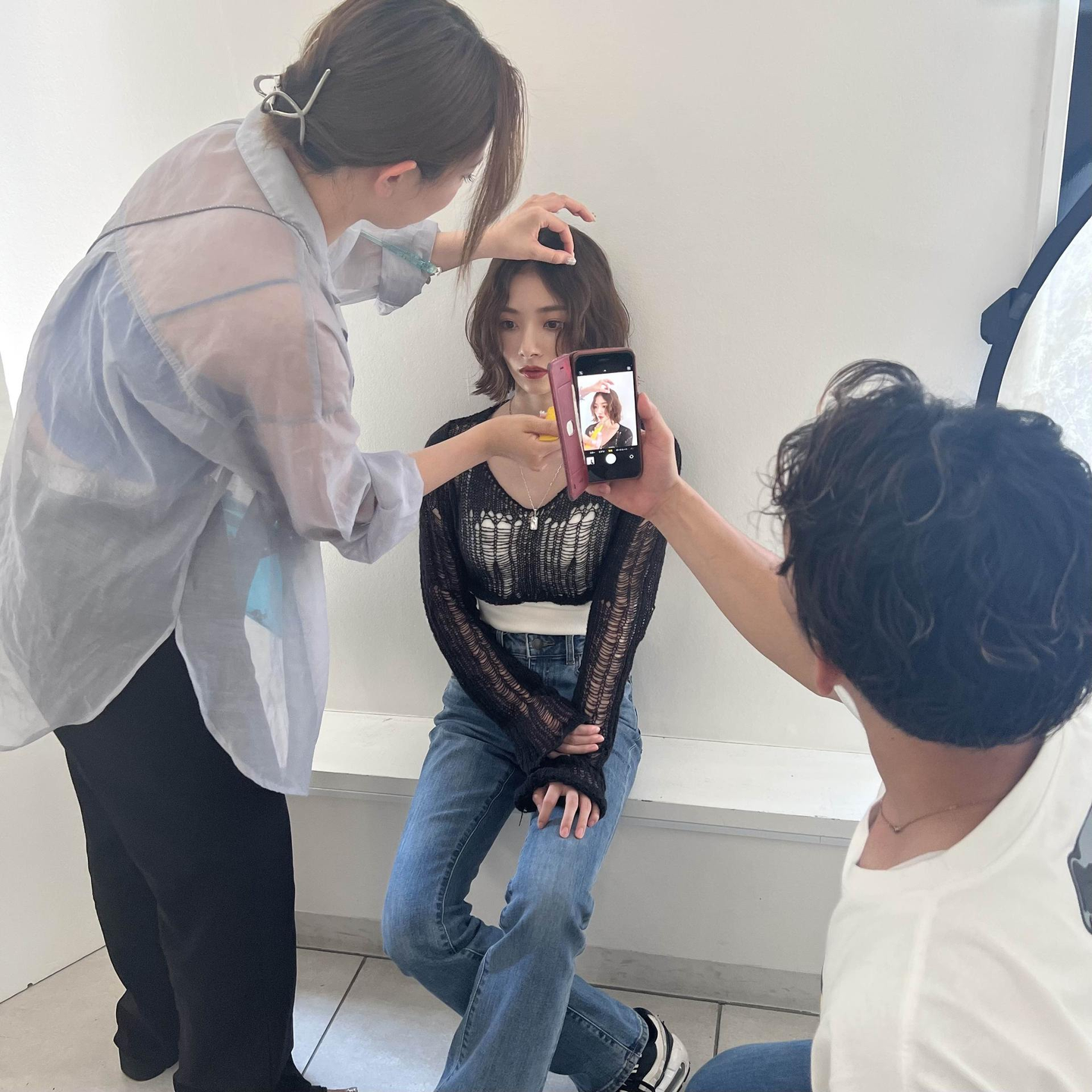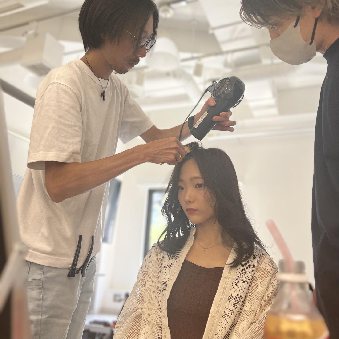 ナチュラルスタイルと流行の韓国風スタイルのロング2スタイルを担当させていただきました。普段のサロンワークで行う“三次元”と、撮影で作り出す“二次元”は全く別物でとても難しかったです。特に、髪色の見え方や立体感の出し方は勉強になりました。
