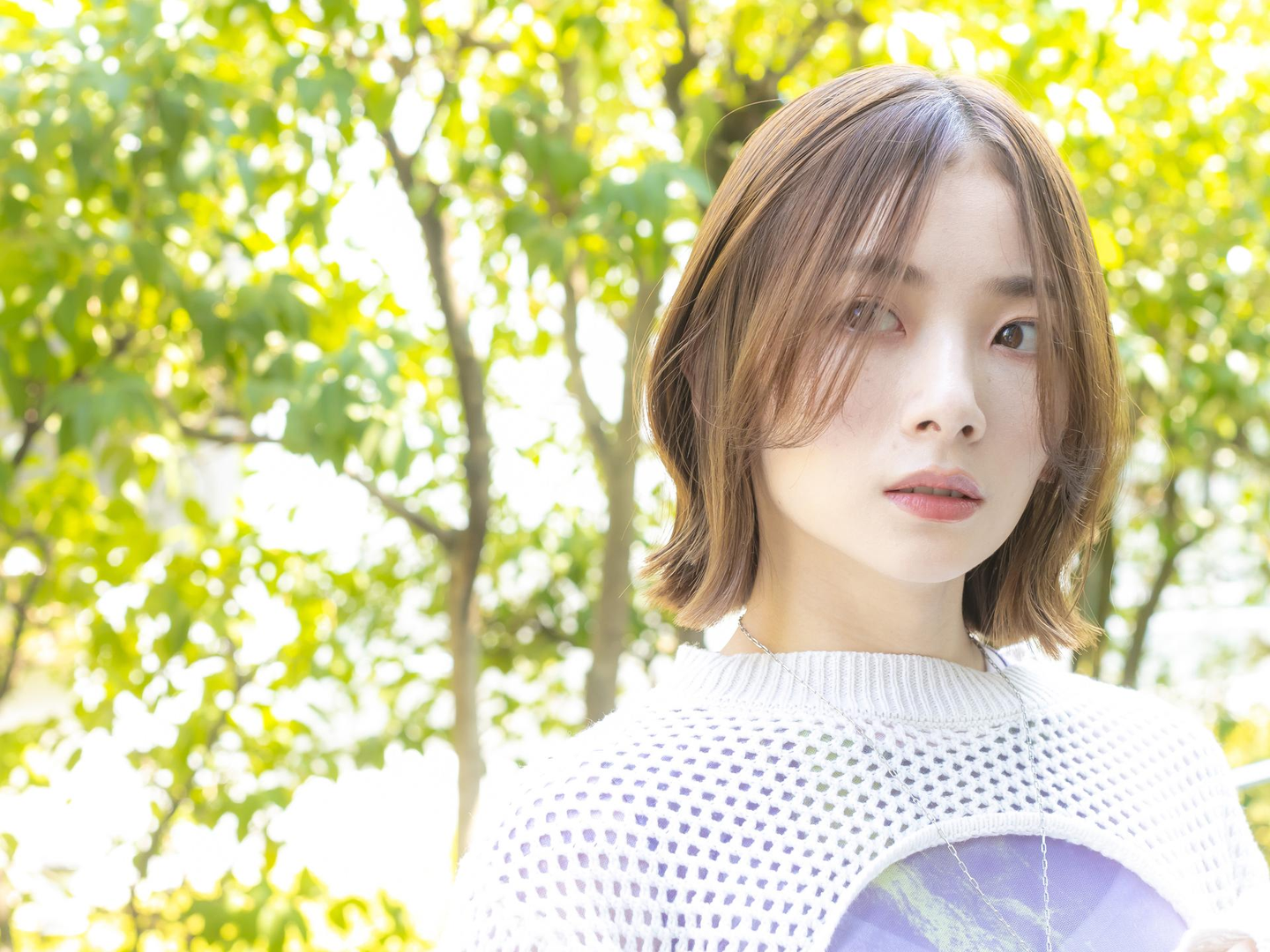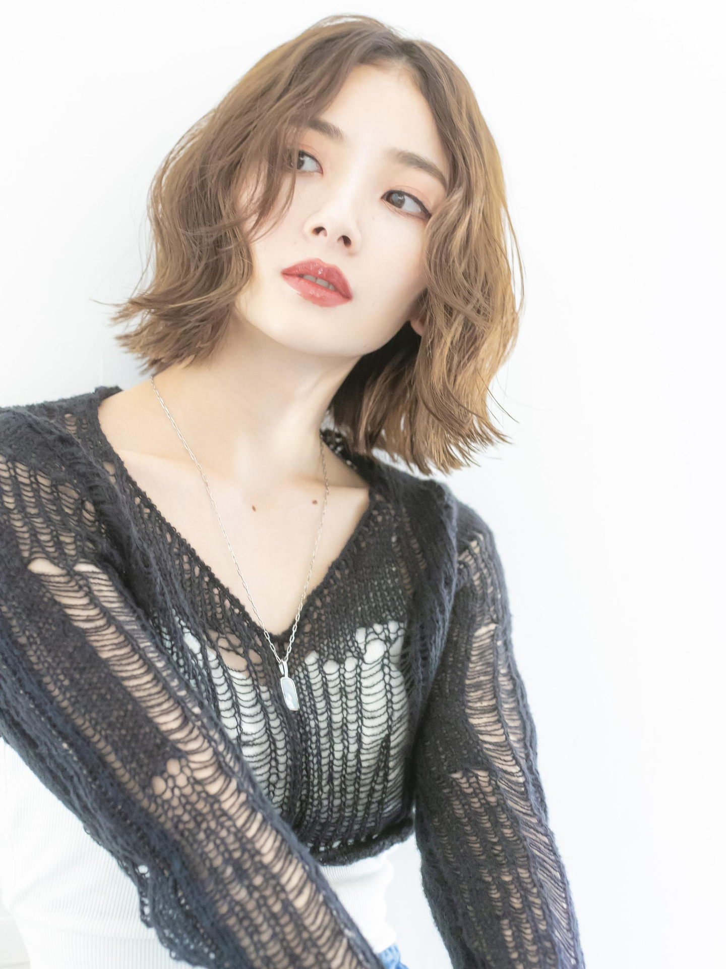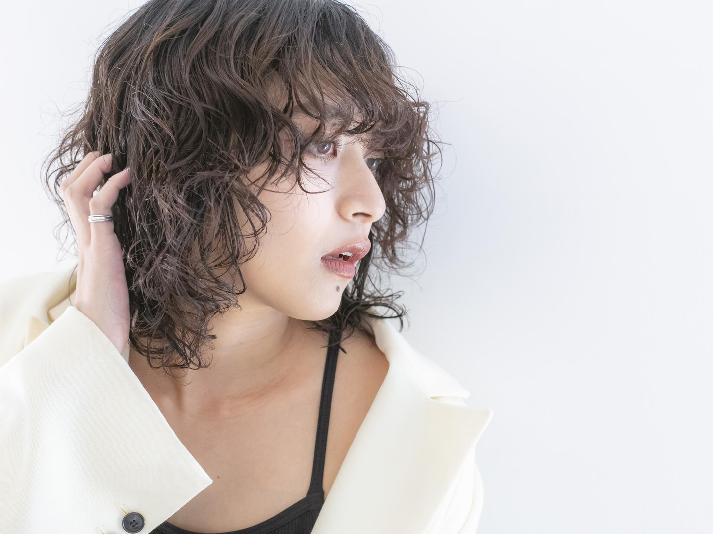 ゆるめのパーマで軽さを、長めのバングと顔まわりのレイヤーで個性を表現しました。