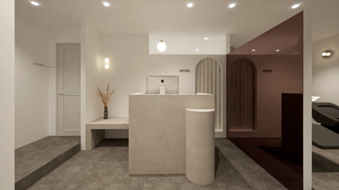 鏡やスタッフルームの入口等、要所に丸みのおびたデザインを取り入れています。