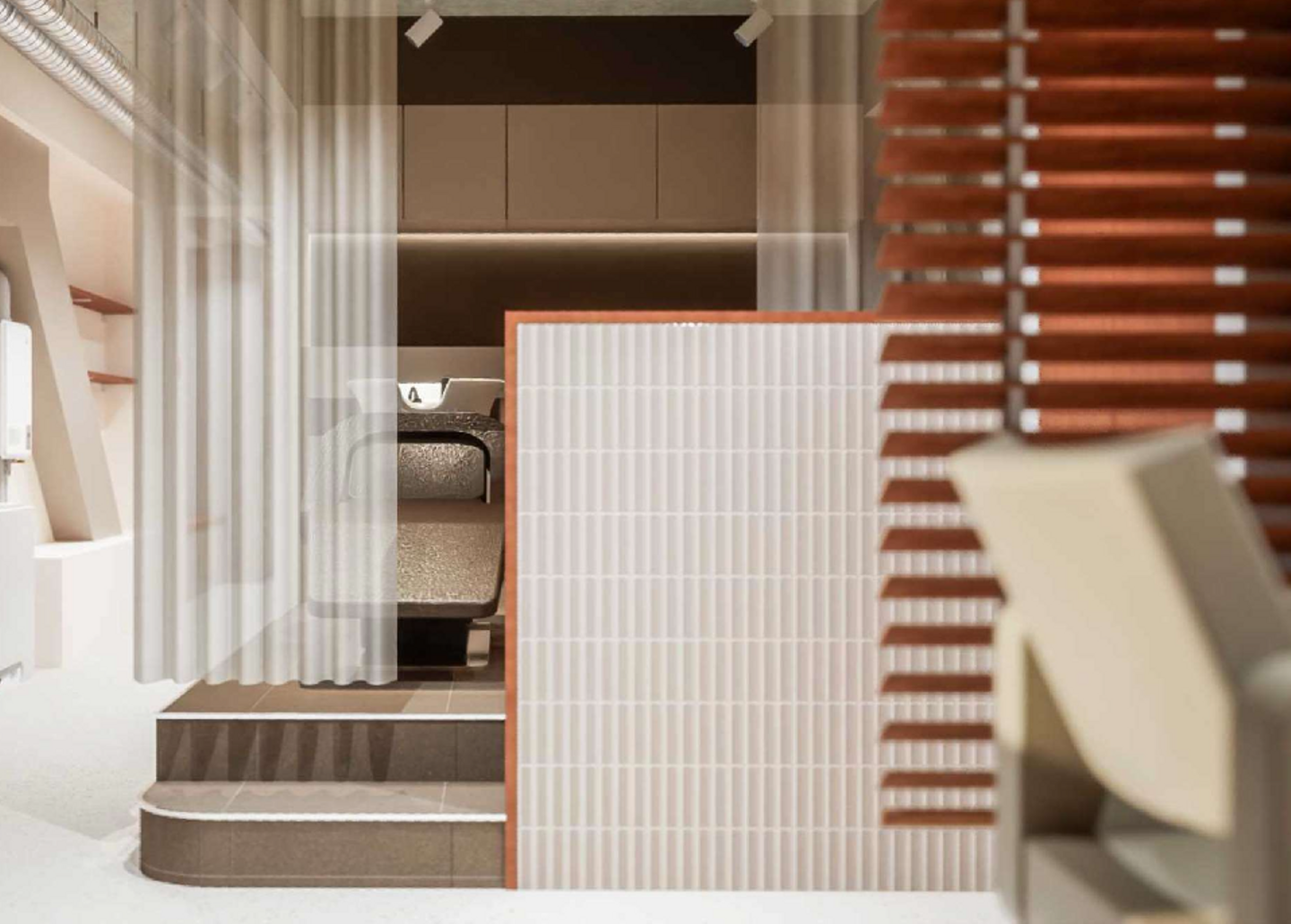 当初、セット面は6面の予定でしたが、半個室のスペース確保や閉塞感を解消するために5面に修正。お客様がゆったりとくつろいで過ごしていただけるスペース確保を優先しました。
