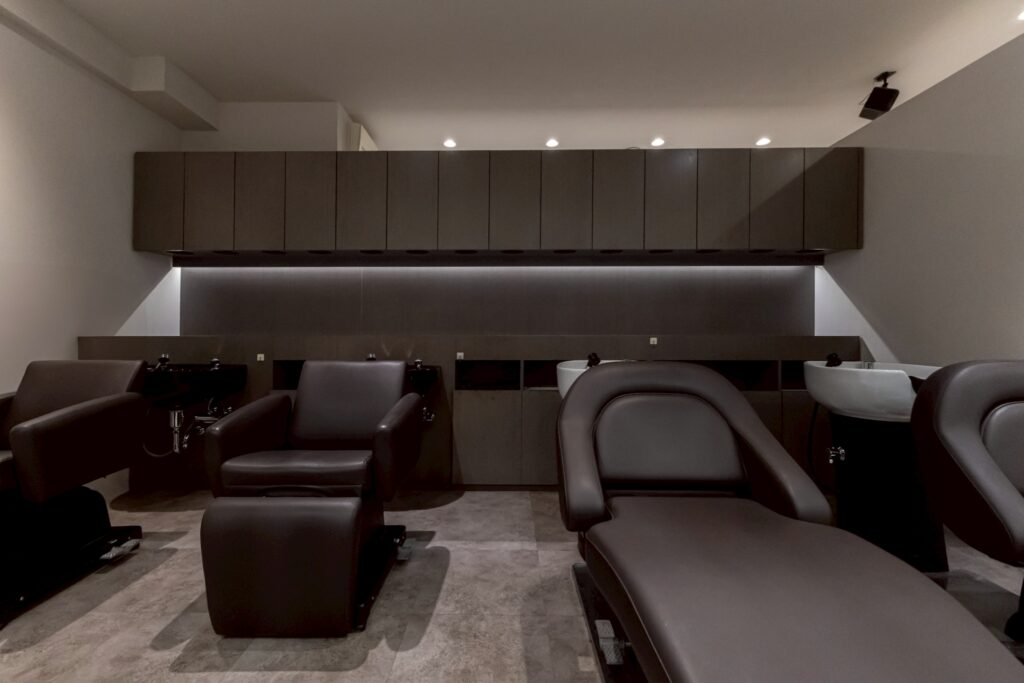 江坂店の空間がゆったりしているのはサロンスペースだけでなく、スタッフルームも余裕のある空間になっています。休憩時間は他スタッフのことを気にせず、思い思いの時間を過ごすことができたり、営業中に練習スペースとして活用することもできます。
