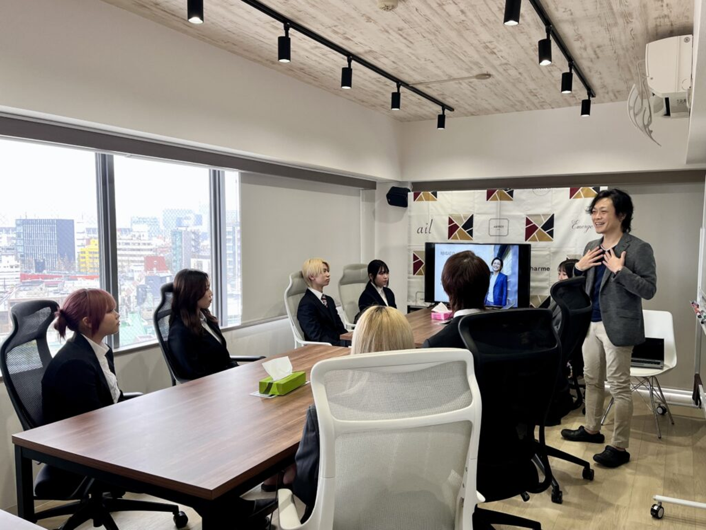 入社式は役員陣、アカデミー長、サロン統括の自己紹介からスタート。