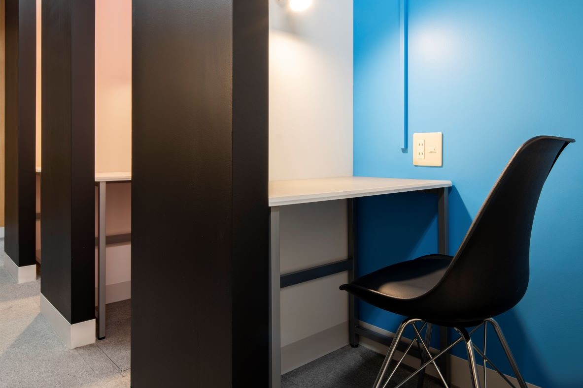 ロゴだけでなく、社名にもあるcolorを意識した造りとなっていてカラフルな椅子が置かれていたり、商談スペースがコーポレートカラー5色が使われていたりと遊び心も感じられる空間になっています。
