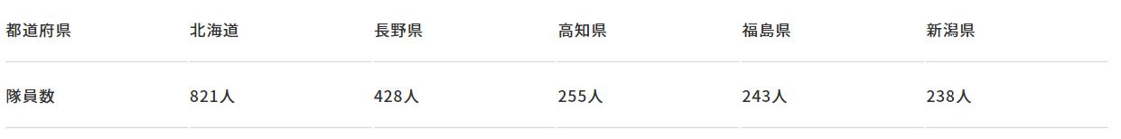 都道府県別の地域おこし協力隊の受け入れ隊員数を見てみると、北海道が最も多く821人、ついで428人の長野県が2番目、255人の高知県が3番目、243人の福島県が4番目、238人の新潟県が5番目という順番になっていました。反対に少ない都道府県は愛知県が15人、大阪府が3人、神奈川県が0人でした。