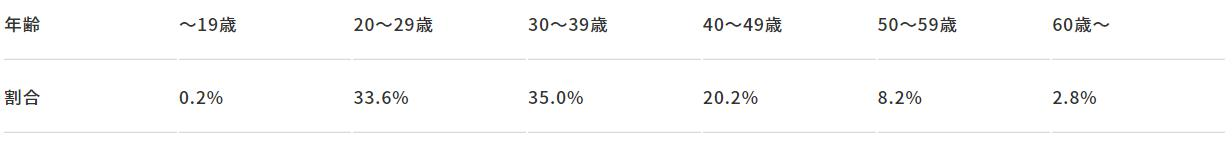 全国の地域おこし協力隊の年齢構成についてですが、10代が0.2%、20代が33.6%、30代が35.0%、40代が20.2%、50代が8.2%、60代以上が2.8%となっています。任期を終了した隊員の年齢構成比では20代29.6%、30代39.7%となっていますので、令和3年度では大幅に20代の参加者が増えていることが伺えます。