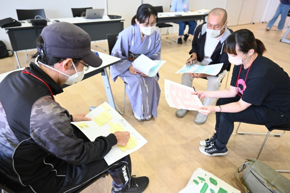 「文字に起こして、さらに言葉で発したことで、皆さんからすごいことだと言ってもらえました。そこから好きでやっていたレザークラフトのスキルをもっと高めようかなと思いました」という気付きや感想を共有してくれました。皆さん、自分の可能性を発見した喜びを感じているようでした。